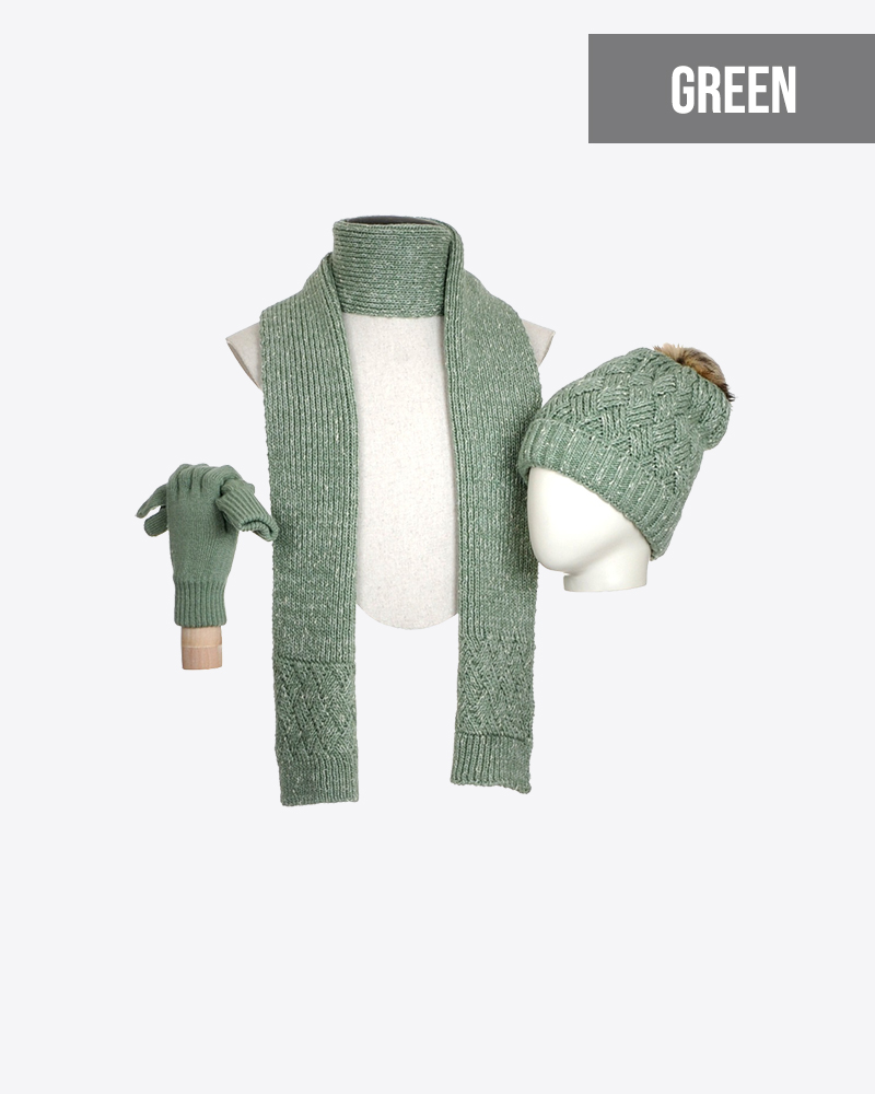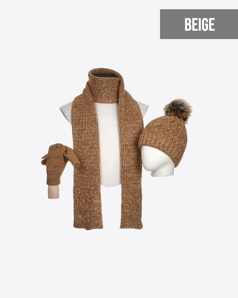Notre paquet contient un bel ensemble d’écharpe, bonnet et gants / mitaines. Le bonnet et l’écharpe sont une excellent option si vous chherchez de la chaleur et du style dans le même paquet. Les gants ou les mitaines ont ont la pour maintient l’air chaud piégé près des mains.